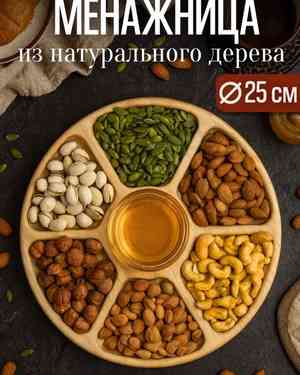 менажница деревянная круглая для закуски на 7 секции