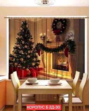 Новогодние Фотошторы 3д ткань габардин Ширина: 2,9м Высота: 1.7м