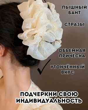Крабик бант пышный для волос со стразами