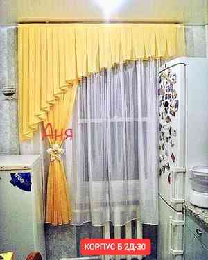 Шторы на кухню. Ламбрекен: 2м Ширина тюль: 2.7м Высота: 1,7м