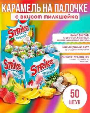 Карамель на палочке «Strike” В упаковке 50шт по 11гр