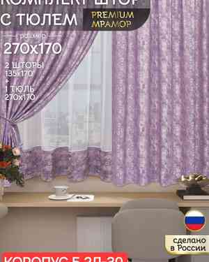 01.11.2025 Шторы на кухню ткань мрамор и тюль вуаль. Ширина: 2.7м Высота: 1.7м Шторы, нитяные шторы 1220 ₽