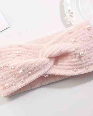 Зимняя тёплая шерстяная вязаная повязка на голову с бусинами