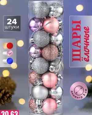 Игрушки для елки, пластик Размер 3 см В наборе 24шт