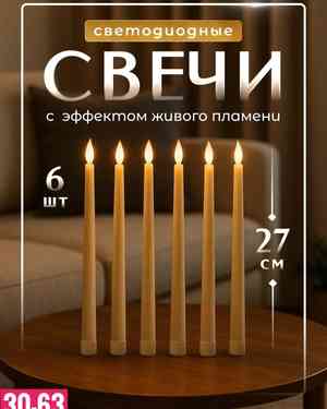 Свечи светодиодные на батарейках , с пультом Размер: 27 см набор 6 шт