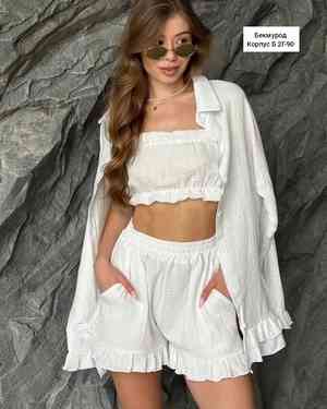 ЖЕНСКИЙ КОСТЮМ ТРОЙКА В РАЗМЕР ТКАНЬ МУСЛИН
