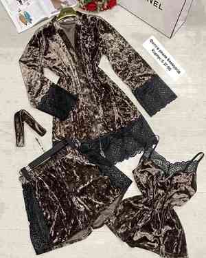ЖЕНСКАЯ ПИЖАМА ТРОЙКА В РАЗМЕР ТКАНЬ ВЕЛЮР