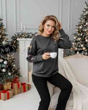 БЛУЗКА ТКАНЬ ТРИКОТАЖ С ПОЕТКАМИ