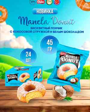 Бисквитный пончик DONUT со вкусом кокоса В упаковке 24шт по 45г