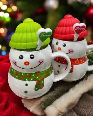 Кружка с силик. крышкой и ложкой СНЕГОВИК в подарочной упаковке Фарфор Объём: 300мл