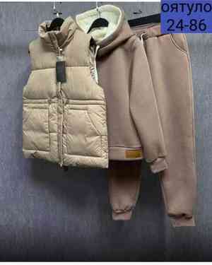 КОСТЮМ ТРОЙКА ТКАНЬ ПЛАЩЕВКА ФЛИС КАПЮШОН С МЕХОМ