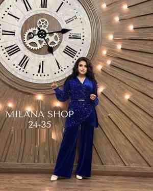 ЖЕНСКИЙ КОСТЮМ ДВОЙКА ТКАНЬ ВЕЛЮР И ПАЙЕТКИ