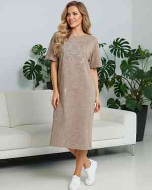 Женская Туника Состав 100% COTTON, ОГ 110см Тянется, Длина 98см Раз: 50/54 (ЕДИНЫЙ)