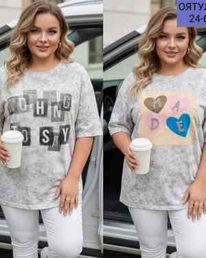 Женские Фабричные люксовые футболки Ткань, мягкий ХБ С камушками Размер 48/58 (единый) оверсай