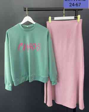 ЖЕНСКИЙ КОСТЮМ Кофточка трикотаж Юбка приятный Сингапур