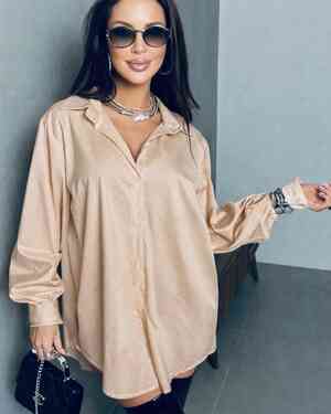 06.04.2026 Женская Рубашка нарядная оверсайз со стразами ткань шелк размер единый: (42/52) Женские Рубашки, Блузки 665 ₽