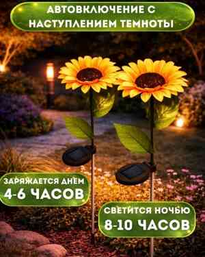 Садовый светильник на солнечной батарее с аккумулятором Подсолнух