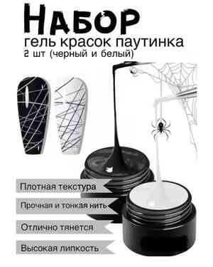 Гель-краска паутинка для дизайна ногтей. Чёрный и Белый
