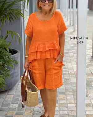 ЖЕНСКИЙ КОСТЮМ ТКАНЬ ЛЕН ПОЛИЭСТЕР