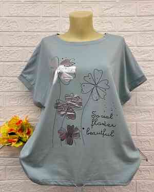 Женская Футболка Состав ткань: 95% Хлопок ( Cotton ), 5% Спандекс Размер: Единый 50-56