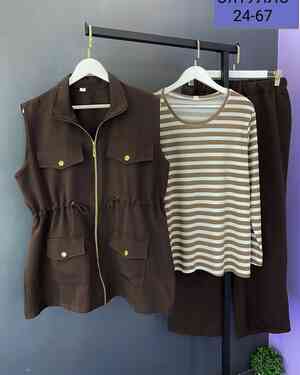 Женский Костюм тройка в размер ткань барби (футболка) кашемир